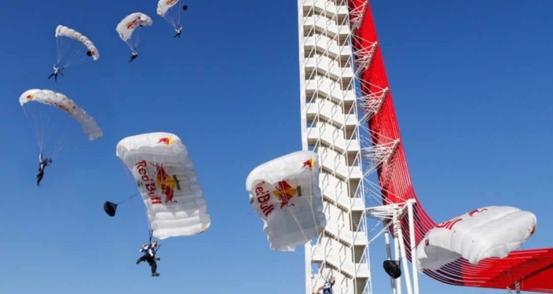 FIRST-EVER B.A.S.E. JUMP OFF ICONIC TOWER KICKS OFF RED BULL MOTOGP OF THE AMERICAS RACE