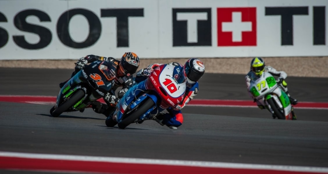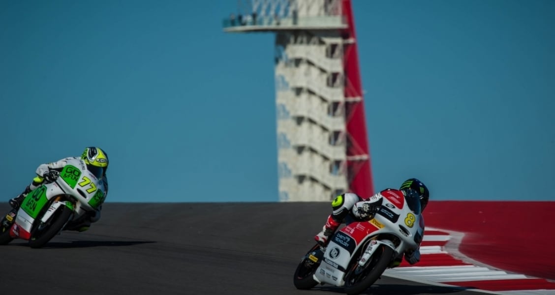 San Carlo Team Italia’s Romano Fenati led the opening Moto3™ practice session on Friday morning. The Italian led Team Calvo’s Maverick Viñales by just nine thousandths of a second. Maverick Viñales led the afternoon practice session. The Team Calvo rider edged out Estrella Galicia 0,0’s Alex Rins by half a second as Qatar race winner Luis Salom completed the top three. – Photos by Keith Rizzo