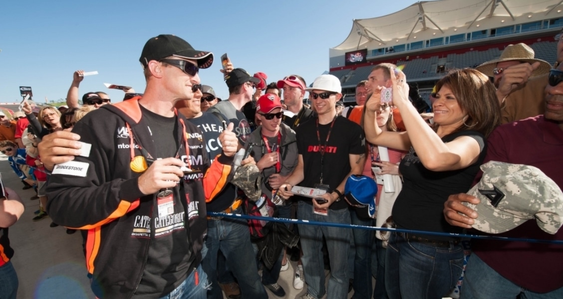 Fans get a taste of the action in the pit lane as they interact with drivers on Friday, April 19.