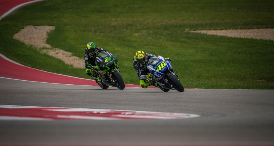 The Yamahas of Valentino Rossi and Aleix Espargaro finished eighth and ninth, respectively. Rossi’s No. 46 Movistar Yamaha finished well behind the second pack of bikes, 17.2 seconds slower than Iannone. Espargaro’s NGM Forward Racing Yamaha took the checkered flag 2.1 seconds after Rossi.