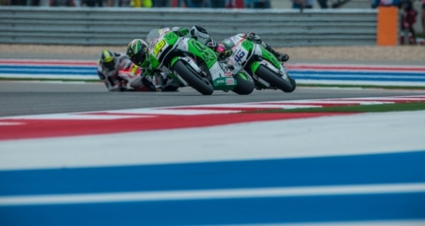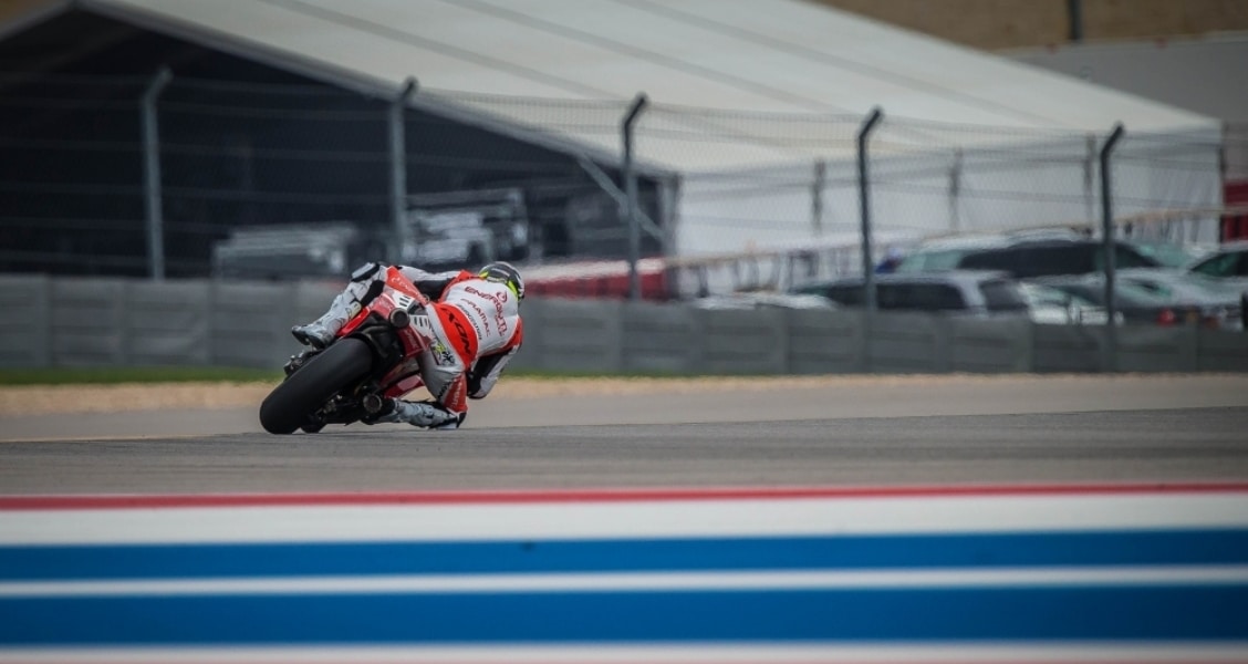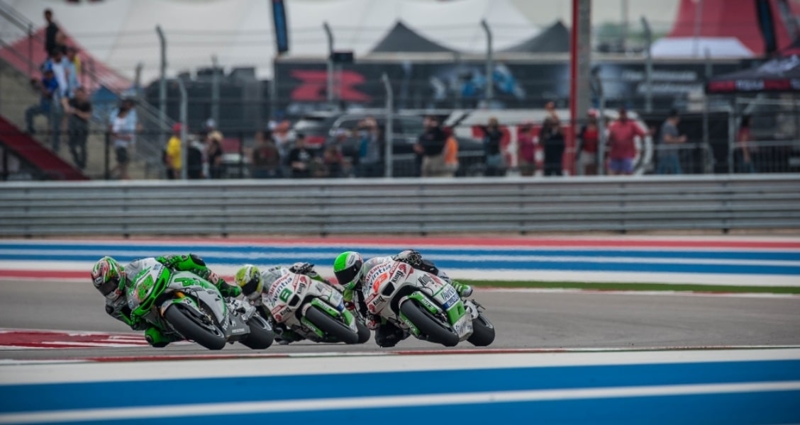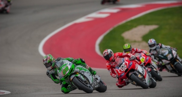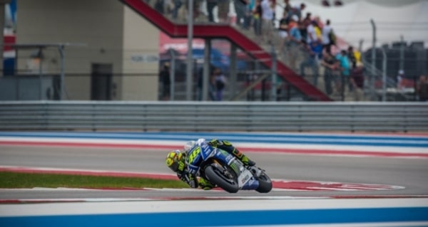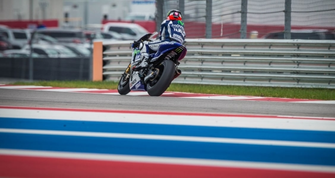 Actually, Marquez was riding second at the start. Last year’s third-place finisher, Jorge Lorenzo on the No. 99 Movistar Yamaha jumped the light and took an un-earned early lead. Perhaps nervous about navigating the corner at the top of Turn 1, he left his fifth-place grid spot early and was forced to take a ride-through penalty after the first lap, putting him at the back of the field of 23. Despite the penalty, Lorenzo managed to work his way through the field and finish the race in 10th place.
