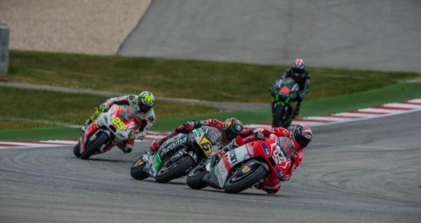 It was not all good news for Ducati though. Dovizioso’s British teammate Cal Crutchlow moved up from seventh to fourth. He was then was forced to pit early in the race to replace a tire that was losing grip. After rejoining the race, he crashed his No. 35 Ducati on lap 12, injured his right hand and was taken off on a stretcher.