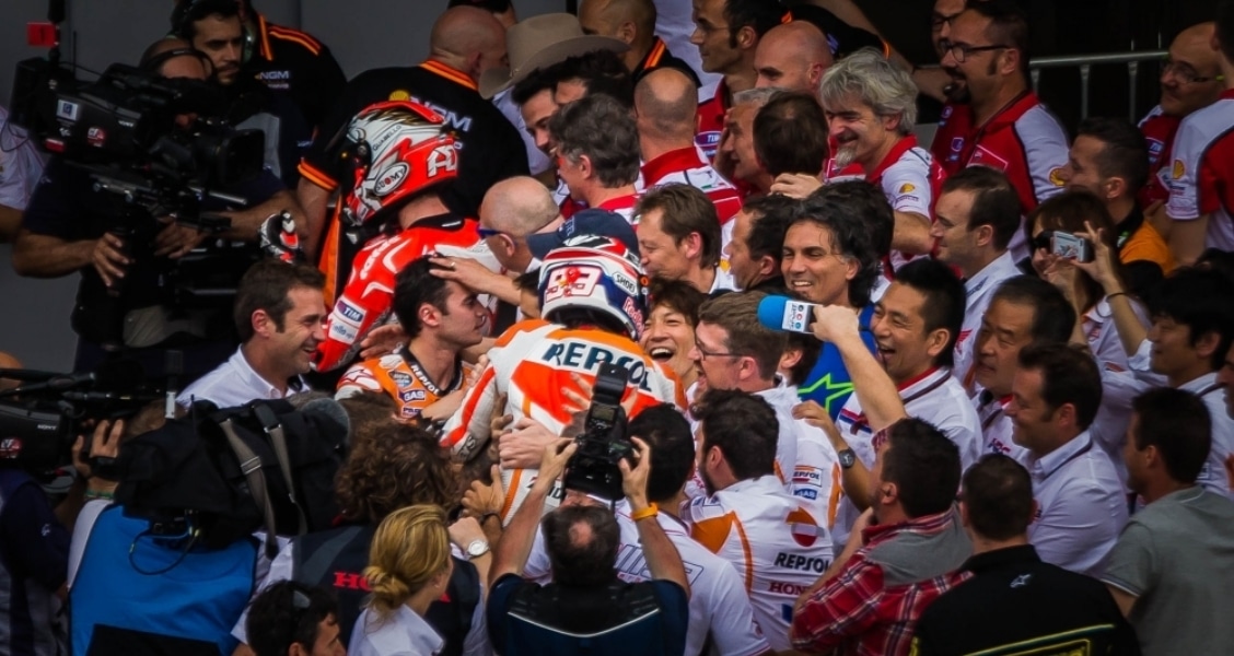 “For a few seconds there, I thought maybe I missed something,” said Pedrosa, “but I was really focused on the light and I saw that it was still red, so my body just wouldn’t move until it went green, and I’m really glad it didn’t. At first I was afraid I wasn’t making a very good start because I saw Jorge take off. Then realized he had made a mistake. I, too, saw him shake his head and realized he was in the wrong.”