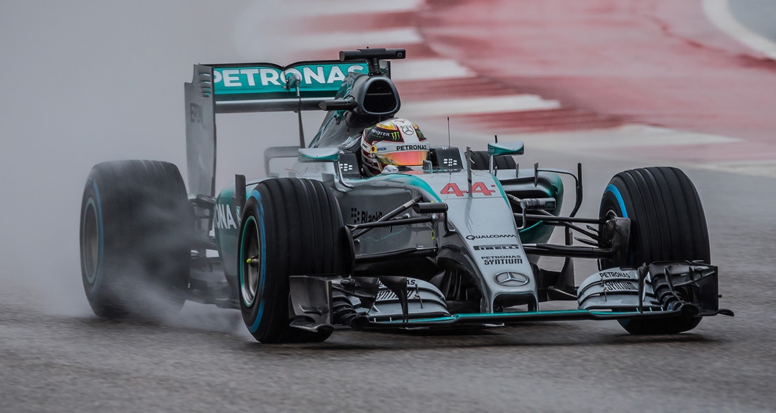 “I wasn’t intentionally trying to run my team mate off the track,” said Hamilton after the race. “During practice we both realized that the back side of the Turn 1 was high and dry, which would give the best grip, heading into the downhill turns. I felt it was important to take advantage of that, given the fact the track was still very wet, and we were all starting out on wet weather tires.