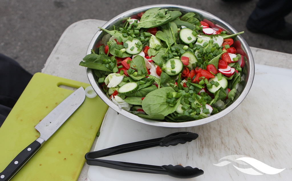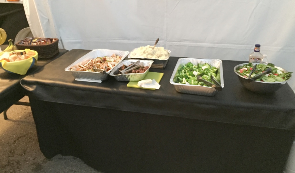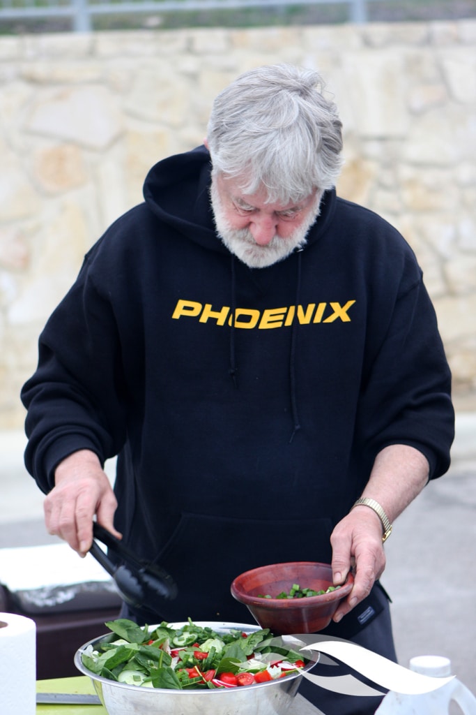 On Saturday evening, Mel and Mark were preparing dinner in the back of the team’s setup in Circuit of The Americas’ paddock. While Mark was working the grill — marinated chicken breasts and beef tips — Mel was cutting tomatoes to put in a spinach salad. The completed meal also included mashed potatoes, steamed broccoli and some dinner rolls.