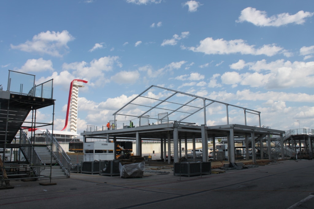 Though the USGP occurs in late October, campus preparations typically begin five months prior in early June. Hospitality spaces like Club SI, the Circuit Suite, and Podium Club are not permanent buildings at COTA, so crews start construction on the grounds over summer to allow for ample build time.