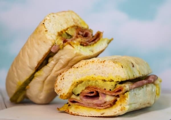 - Meat Your Heart – Cuban Sandwich – 8-inch Cuban sandwich topped with ham, Caribbean Pork, swiss cheese, pickles, mustard and cilantro mayo.