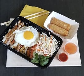 - Asian Express – Chicken and Rice – Your choice of Sesame, General Tso’s or Salt & Pepper Chicken served with rice.