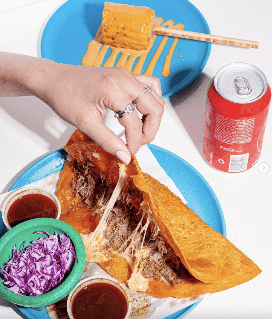 - Torres Tacos – Texas-Sized Tacos – Giant brisket, chicken tinga or pulled pork tacos, topped with cilantro and onion.