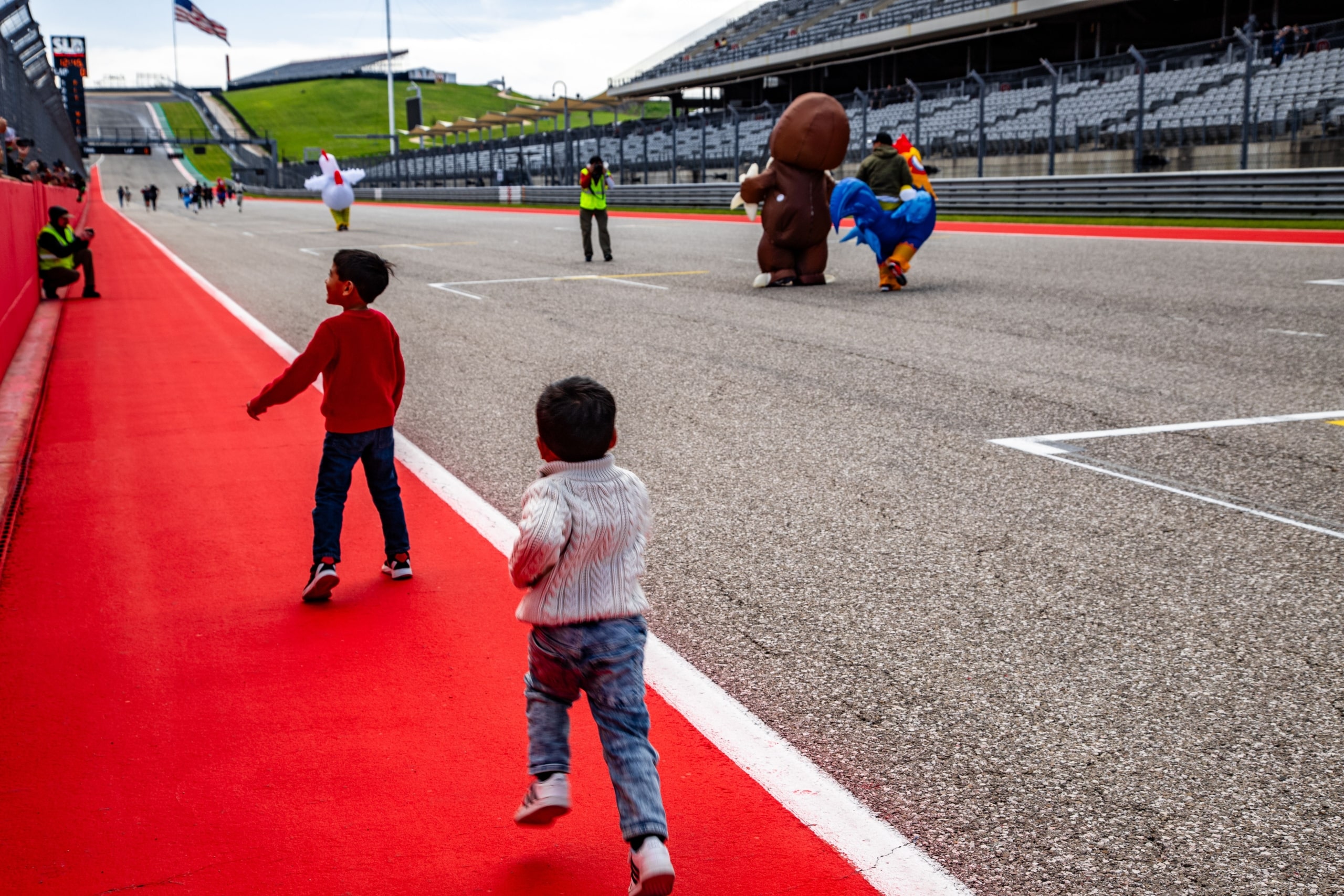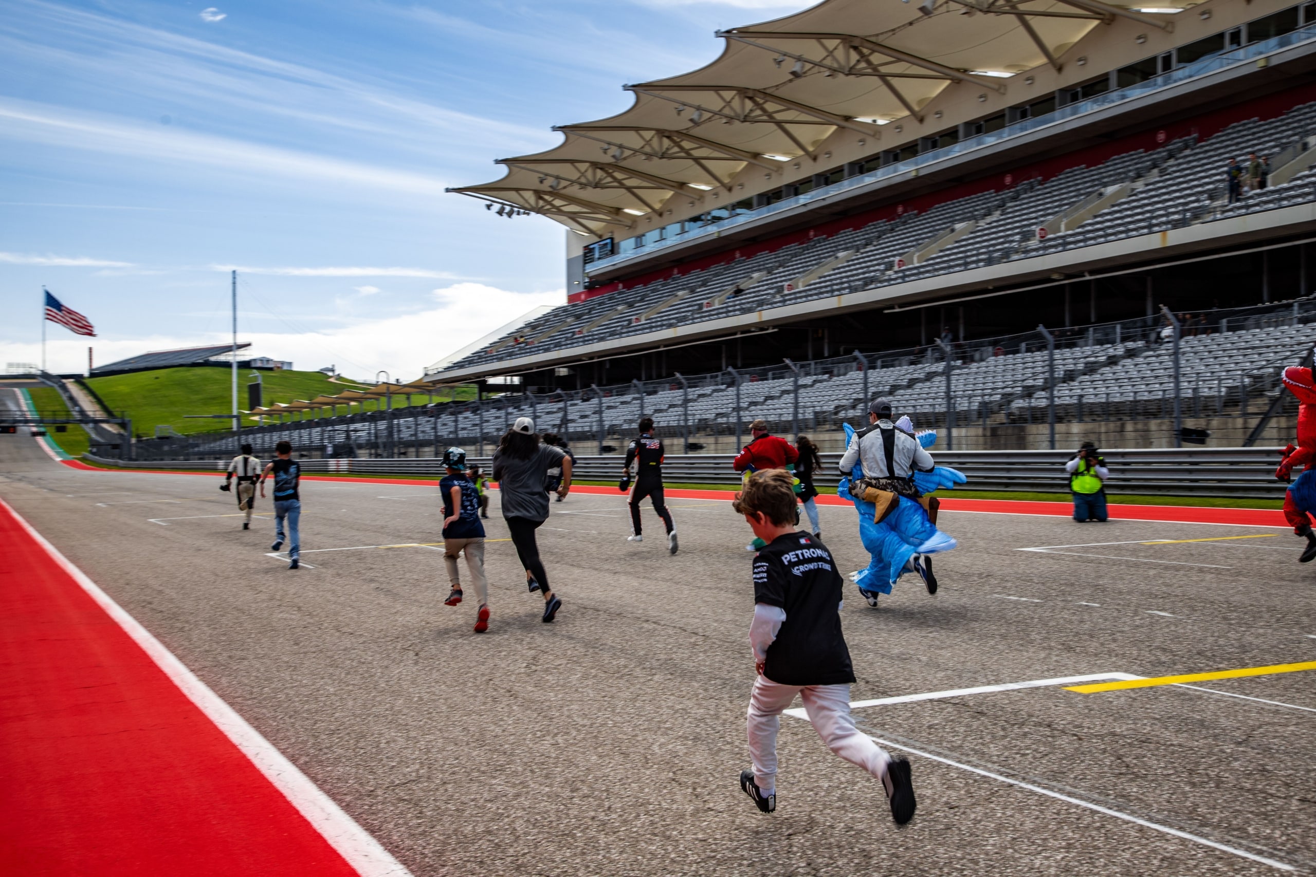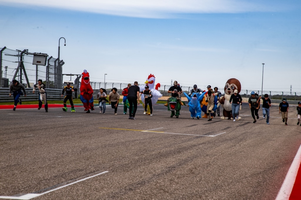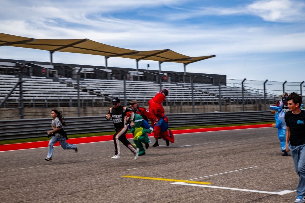 In collaboration with Autism Speaks, COTA and the Super Lap Battle team staged the Great Inflatable Race during Sunday’s lunch hour. Autism Speaks coordinated outreach to the greater Central Texas area to invite families and motorsports fans with connections to the Autism Spectrum to participate. Children were invited onto COTA’s world-famous track to compete in a friendly foot race down the front straight with Super Lap Battle drivers in inflatable costumes – bringing smiles and laughs to the whole grid.