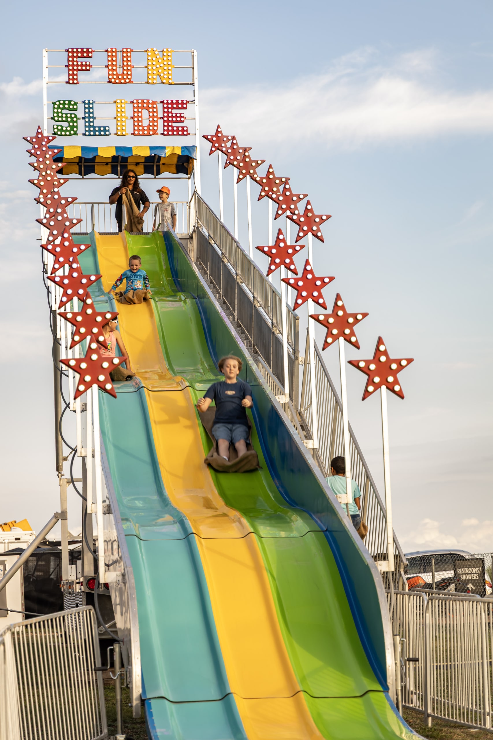 Yes, there are Restroom and Shower trailers available. Shower passes can be purchased once onsite.